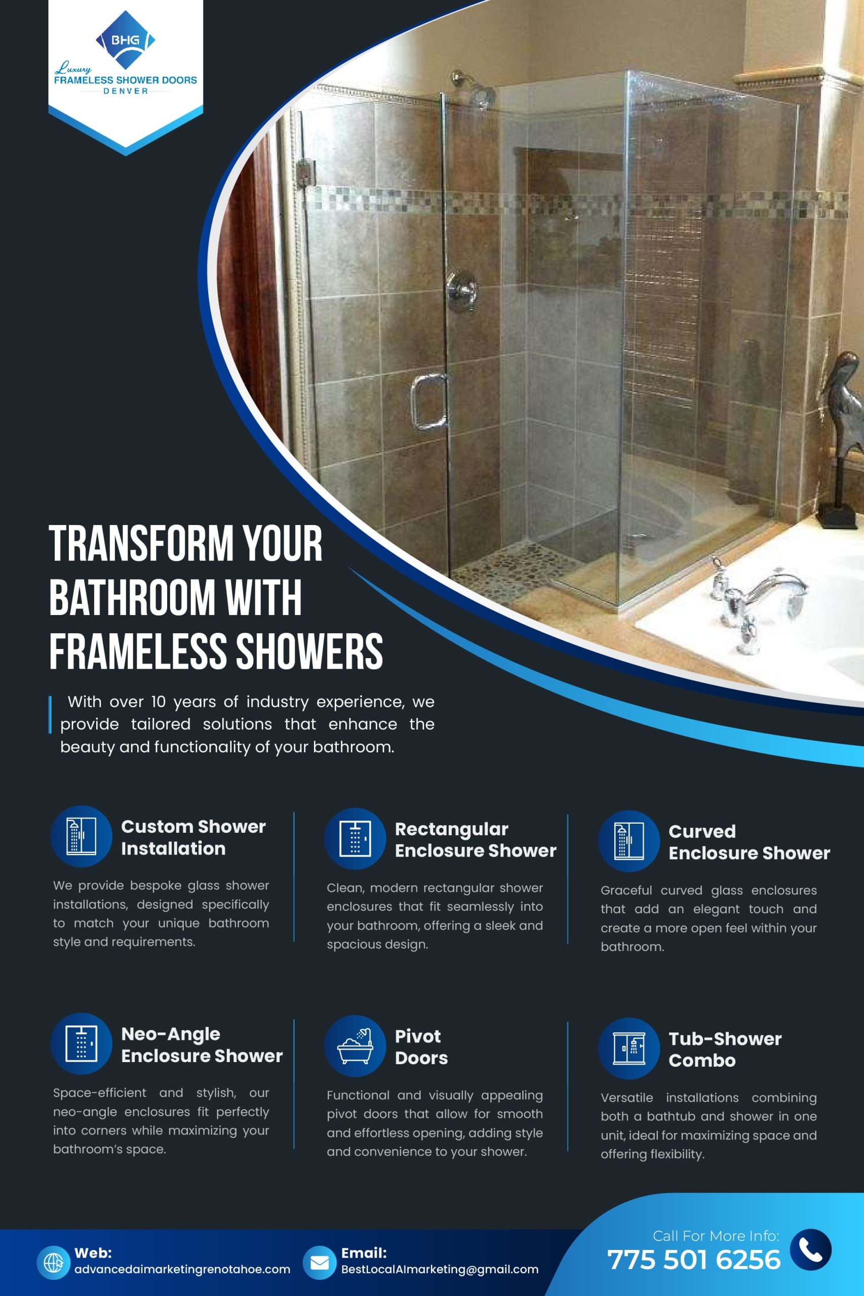 Are you looking for a professional glazing company to help you with the installation of a frameless shower in your home or office? If yes, then you have come to the right place. BHG Frameless Glass is a professional glazing company offering frameless shower installation services to both residential and commercial property owners in Denver, Lakewood, Boulder, and surrounding areas.